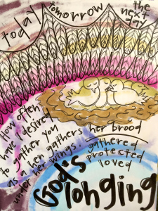Friend, blogger, and artist Vonda Drees shared a number of beautiful posts over the past week. These posts included: “reflections of God’s love“; “just how wide?“; “good food“; “enough for everyone“; “under her wings“; “to be hungry“; and “creating connected, whole and holy.”