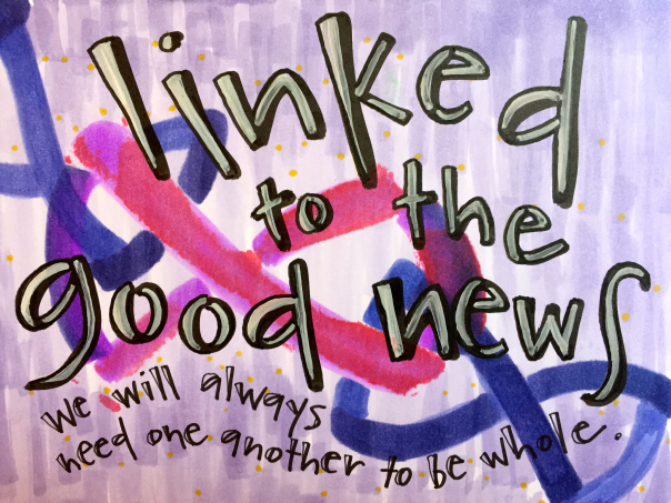 Friend, blogger, and artist Vonda Drees shared a number of beautiful posts over the past week. These posts included: “creating connected, whole and holy“; “move in us, Spirit“; “spread light“; “we seek shalom“; “we can do better“; “mercy circles“; “linked we are whole“; and “precious.”